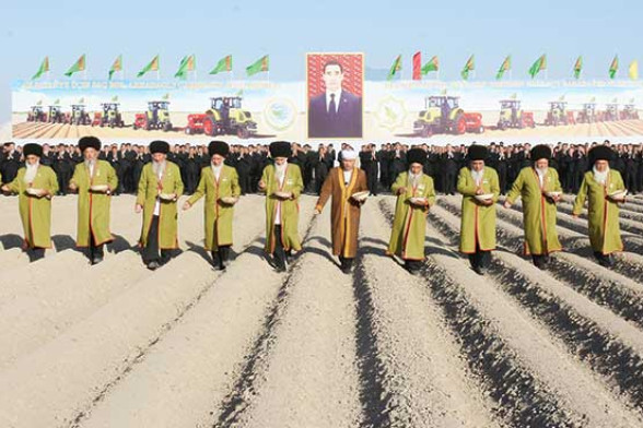 Sakarçäge etrabynyň Daýhan geňeşliginiň çäginde alyslara ýaýylyp ýatan, bugdaý ekişine birkemsiz taýýarlanan ekin meýdanynyň ýakasynda yzyna ekijiler tirkelen traktorlar, giň meýdançada ýerleşdirilen tehnikanyň ätiýaçlyk şaýlary tehnikanyň ekişde bökdençsiz işlediljekdigine ynam döredýär. Toý gününi ýada salýan bezemen meýdançada aýdym-sazyň owazy belentden ýaňlanýar.