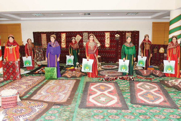 Bu ýerde işlerine ussat gelin-gyzlarymyz ýurdumyzyň welaýatlarynyň aýratynlyklaryna görä, gadymy milli “Ak tüýnük”, “Gyzyl tüýnük”, “Gözenek”, “Saýlan”, “Gülýaýdy”, “Sekiz goçak”, “Gapyrga”, “Içýanagyz”, “Tazy guýruk” ýaly nagyşlary salyp, keçelerimizi güllemekde bäsleşdiler.