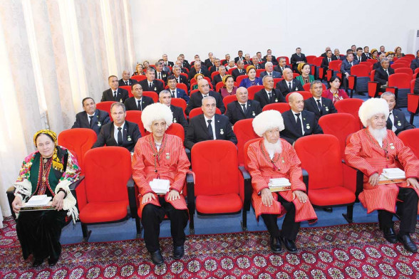 Soňra welaýat häkimliginde geçirilen dabarada “Türkmenistanyň hormatly il ýaşulysy”, “Zenan kalby”, “Watana bolan söýgüsi üçin” diýen ada we ordene, medala mynasyp bolanlara hem-de Türkmenistanyň Prezidentiniň “Türkmeniň Altyn asyry” atly bäsleşiginiň ýeňijilerine hormatly Prezidentimiziň adyndan medallardyr ordenler, altyn zynjyrlar we pul baýraklary gowşuryldy. Şeýle-de, öz yhlasyny gaýgyrman zähmet çeken raýatlara Türkmenistanyň Prezidentiniň Permany bilen hormatly atlar dakyldy.