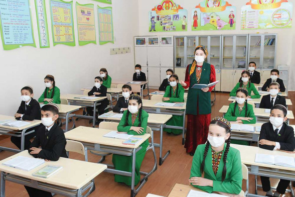SURATDA: Merjen Rejebowa 6njy “B” synp okuwçylary bilen sapak wagtynda.