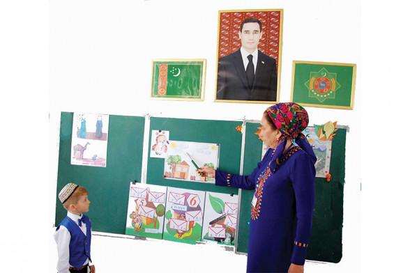 SURATDA: bakja-bagyň terbiýeçisi Akmaral Ataýewa sapak wagtynda.