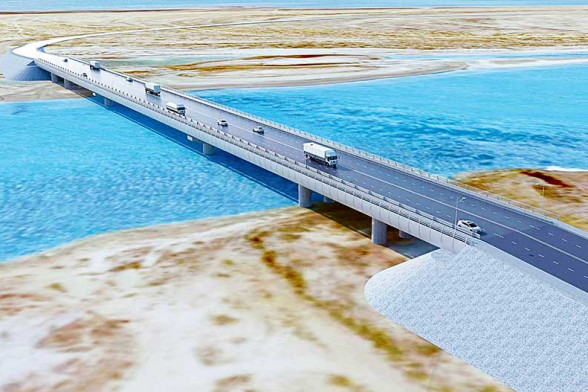 Halkyň Arkadagly zamanasy ýylynyň ýene bir guwançly wakasy türkmen iliniň guwanjyny goşalandyrdy. Hormatly Prezidentimiz ýol-ulag düzüminiň möhüm desgasynyň — Türkmenbaşy — Garabogaz — Gazagystan serhedine çenli barýan awtomobil ýolunyň ugrunda Garabogazköl aýlagynyň üstünden geçýän täze awtomobil köprüsiniň düýbüniň tutulmagyna ak pata berdi. Bu wakanyň ykdysady ähmiýeti juda uludyr. Sebäbi yklymara geçelgeleriniň çatrygynda ýerleşýän Türkmenistan döwletimiziň ulag-üstaşyr mümkinçiligi giň gerime eýedir. Şonuň üçinem ýurdumyzyň ulag ulgamynyň kuwwatynyň döwrüň talabyna laýyk ösdürilmegi möhüm wezipeleriň biri bolup durýar. Gurluşyna ak pata berlen täze köpriniň Garaşsyz döwletimiziň ýol-ulag düzüminiň uly geljeginde wajyp orna eýe boljakdygy şübhesizdir. Täze desganyň gurluşygy “Dorožnoýe stroitelstwo “Altkom” jogapkärçiligi çäkli jemgyýetiň gurluşykçylary iki ýylyň dowamynda Türkmenbaşy — Garabogaz — Gazagystanyň serhedine çenli barýan awtomobil ýolunyň ugrunda Garabogazköl aýlagynyň üstünden geçýän awtomobil köprüsini gurarlar. Şeýle hem oňa eltiji ýollaryň gurluşygyny ýerine ýetirmek ynanyldy. Täze awtomobil köprüsiniň uzynlygy 354 metre, ini bolsa 21 metre deňdir.