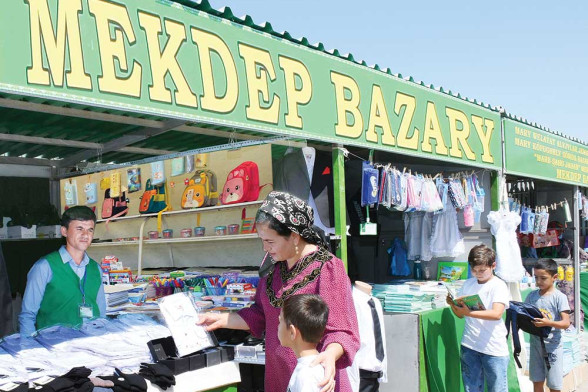 Her ýylyň awgust aýynda täze okuw ýylyna taýýarlygyň çäginde mekdep bazarlarynda söwda-satuwy ýola goýmak indi ýurdumyzda asylly däbe öwrüldi. Welaýat alyjylar jemgyýetleriniň birleşiginiň guramagyndaky edaralar boýunça 2023 — 2024-nji okuw ýyllary üçin guralan mekdep bazarlarynyň we göçme söwda nokatlarynyň 111-si öz işine başlady. Olarda mekdep üçin okuw esbaplary, kanselýariýa harytlary, oglanlar we gyzlar üçin milli biçüwde tikilen egin-eşikler, tahýalar, okuwçy sumkalarynyň her dürli görnüşleri bar. Elbetde, söwda nokatlaryndaky harytlaryň hiliniň ýokarylygy, nyrhlaryň elýeterligi bada-bat ünsüňi özüne çekýär.
