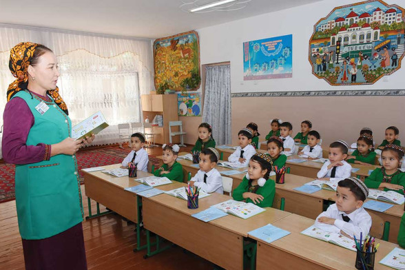 Laçyn Amanowa çagalar bilen sapak wagtynda.