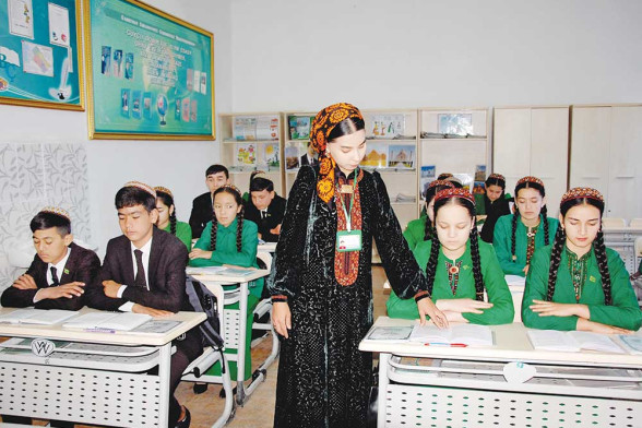 SURATDA: mekdebiň iňlis dili mugallymy Tawus Ärsaryýewa iş wagtynda.