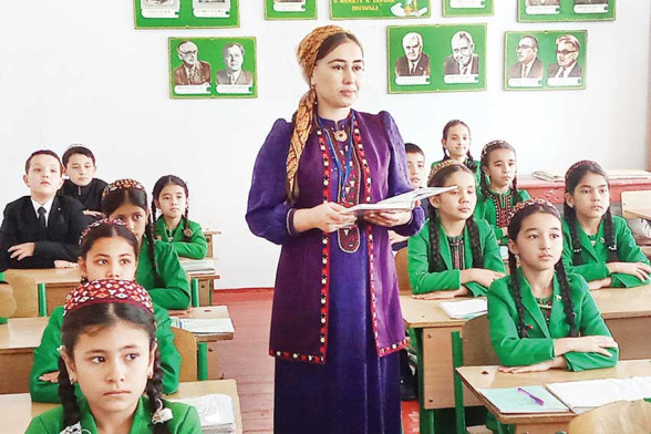 SURATDA: Aýlar Annakuliýewa sapak wagtynda.