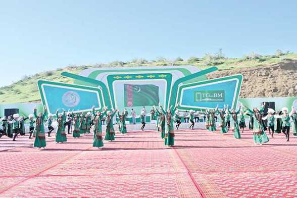 Täze şäherçäniň düýbüni tutmak dabarasynda şirinden-şirin aýdym-sazlaryň owazy belentden ýaňlanyp, tansçylaryň şowhunly tanslary dabaranyň şatlyk-şagalaňyny artdyrdy.